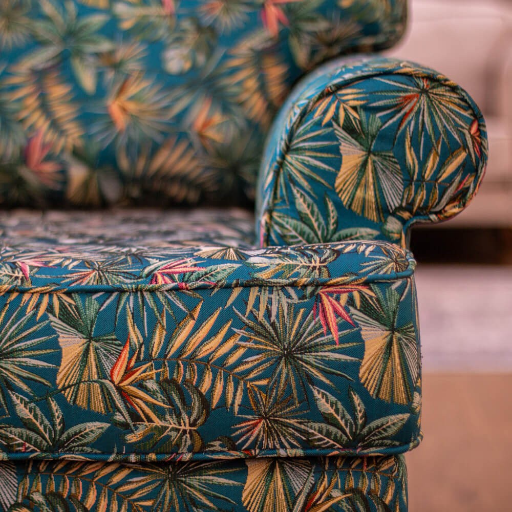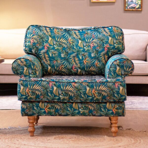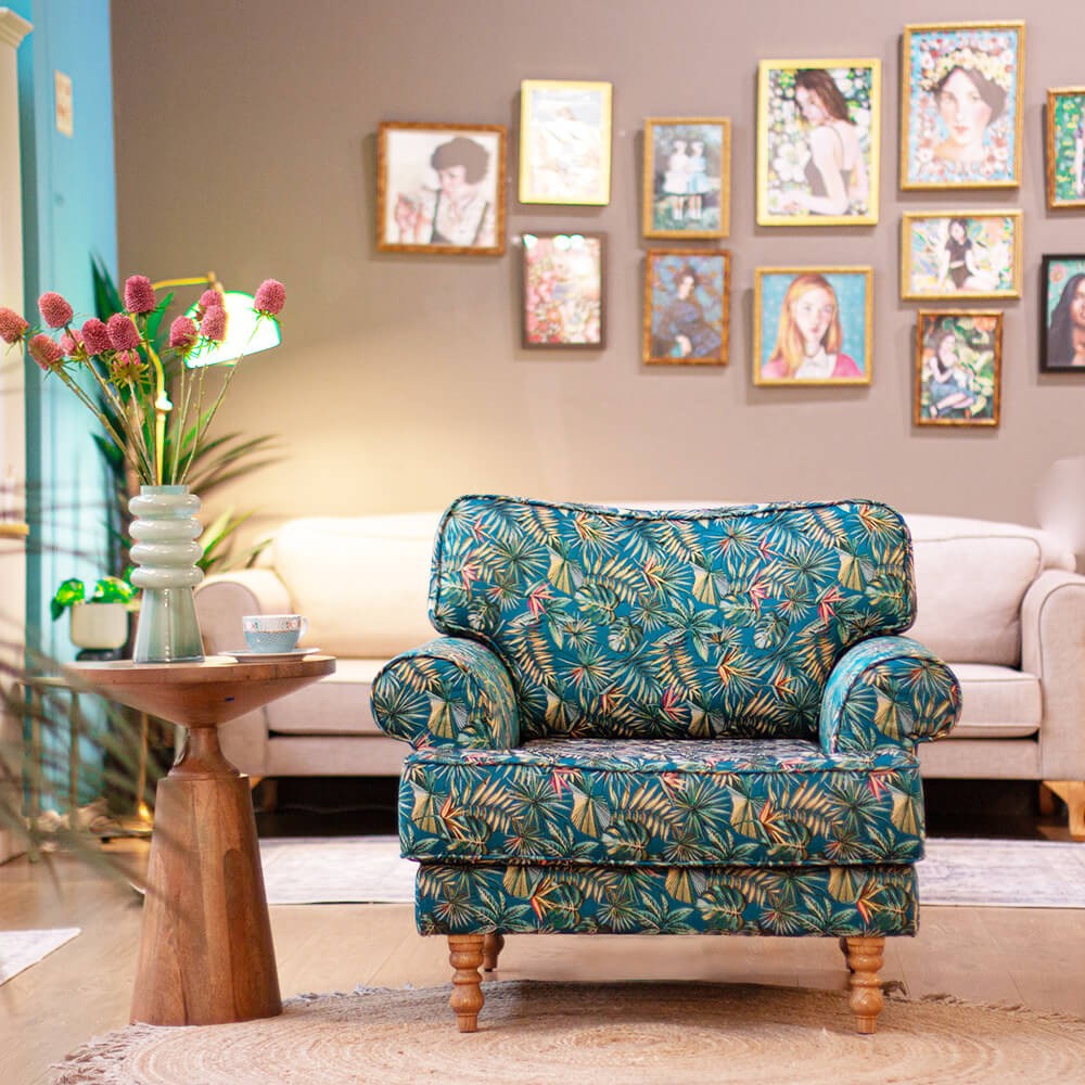 כורסת קארי שלנו, מרשימה, רחבה ומפנקת, מעוצבת בקווים מעוגלים ורגלי עץ מעוצבות
