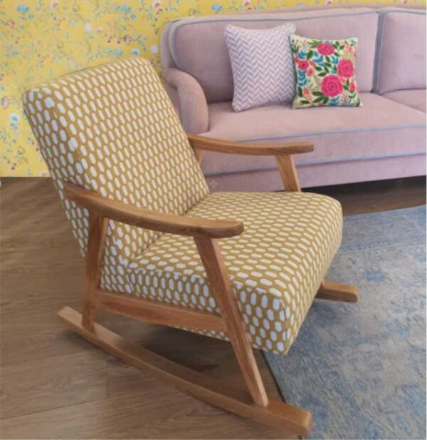 כורסה מעוצבת נינה, עם רגלי נדנדה מעץ מלא, לבחירתכם במגוון בדי ריפוד