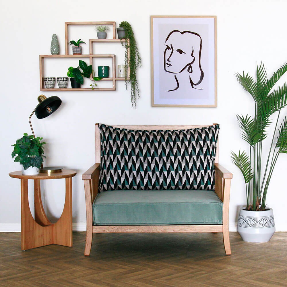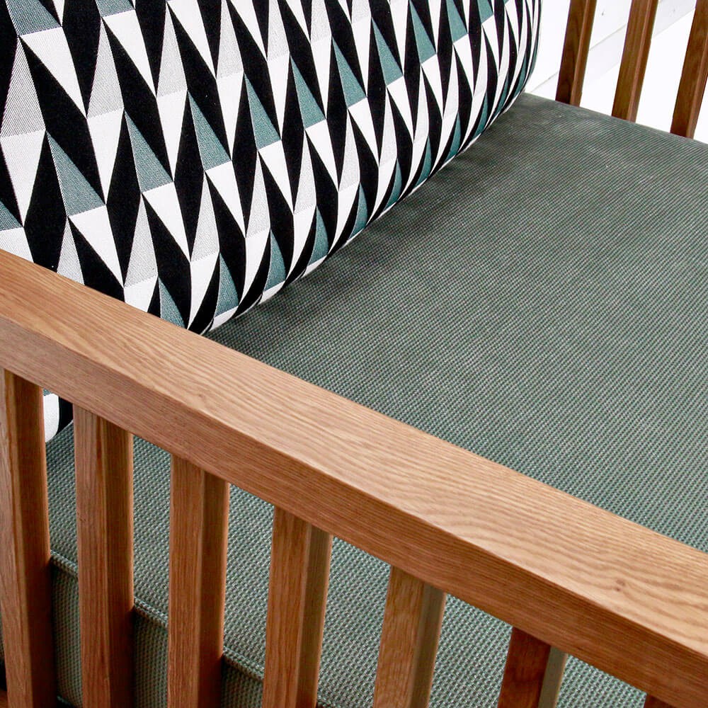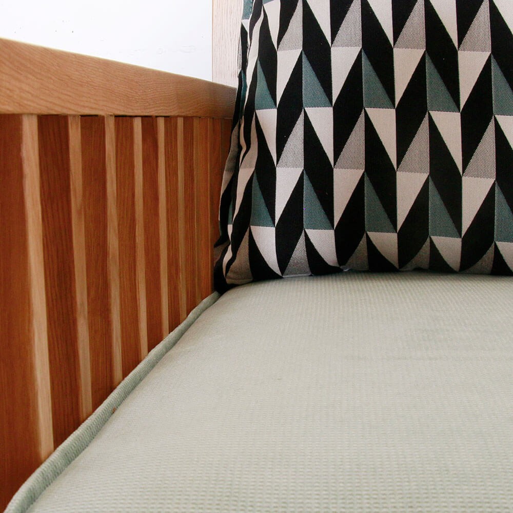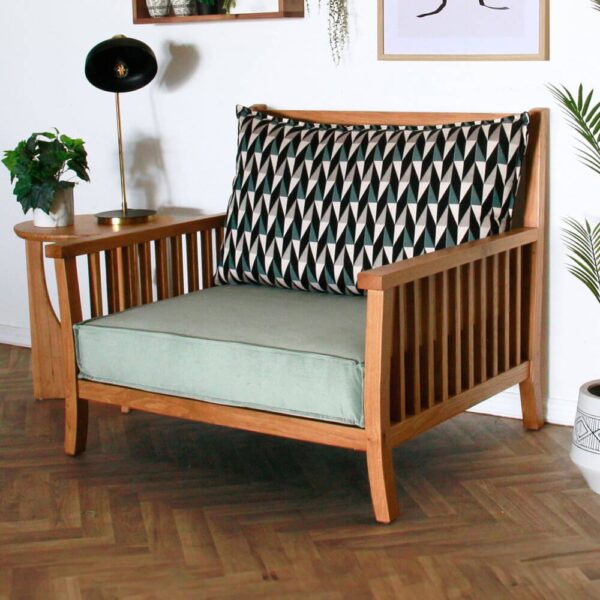 הכורסא עשויה מעץ אלון מלא, מורכבת מכרית גב אחת ומושב