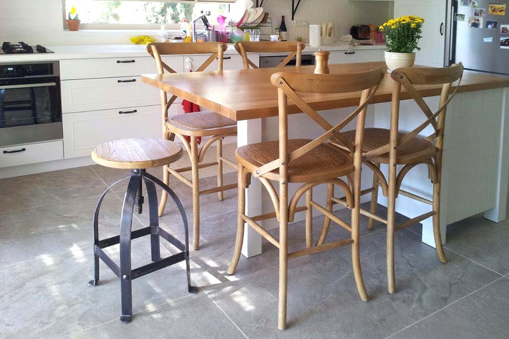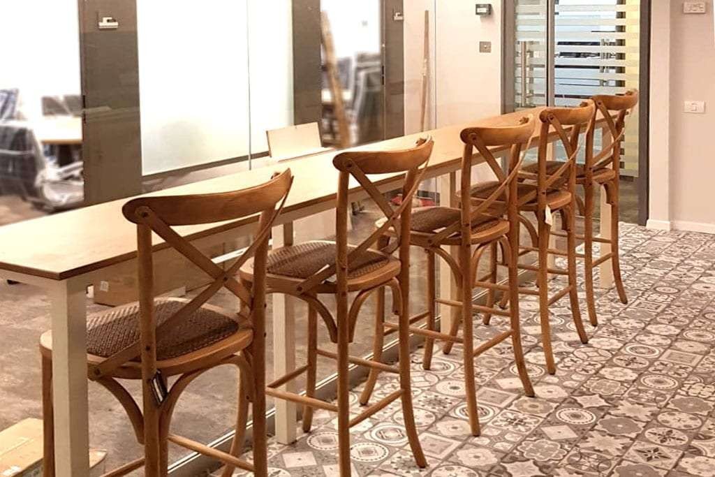 כסא בר חום עם משענת המיוצרים מעץ מלא ואיכותי ומעוצבים בסגנון כפרי הכולל מבנה נוח לישיבה ממושכת עם משענת מעוגלת וחובקת, משטח ישיבה מרופד וחיזוקים ברגליים וגוון צבע של אגוז עם ציפוי לכה המדגיש את הטקסטורה הטבעית של העץ המלא. גובה המושב הוא 65 ס"מ המותאם לדלפק או בר בגובה 90 ס"מ