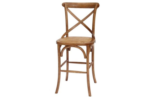 כסא בר מעץ מלא עם משענת המעוצבים בסגנון כפרי הכולל מבנה נוח לישיבה ממושכת עם משענת מעוגלת וחובקת, משטח ישיבה מרופד וחיזוקים ברגליים וגוון צבע של אגוז כהה עם ציפוי לכה המדגיש את הטקסטורה הטבעית של העץ המלא. גובה המושב הוא 65 ס"מ המתאים לדלפק או בר בגובה 90 ס"מ. כיסאות כפריים ואיכותיים במיוחד ברמת הגימור הגבוהה ביותר של הדגם