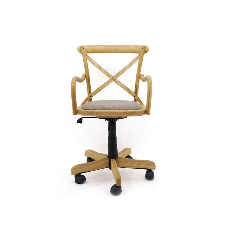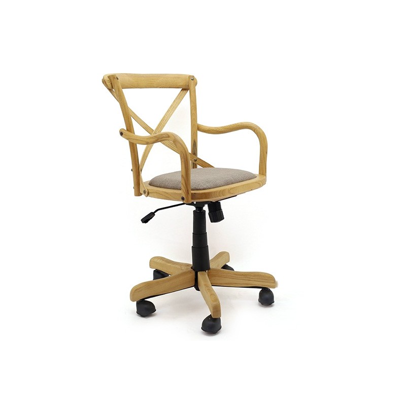 כיסא משרדי איקס משולב עץ, טקסטיל ומתכת, מושב נוח ומרופד, בעל מנגנון נדנוד וטלסקופ מתכוונן