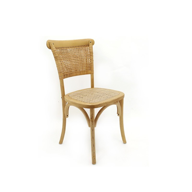 כיסא אוכל קלוע משולב עץ וראטן, מושב נוח עשוי ראטן