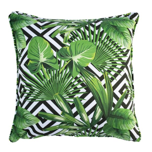 כרית נוי באיור עלים וצורות גיאומטריות בשחור ולבן