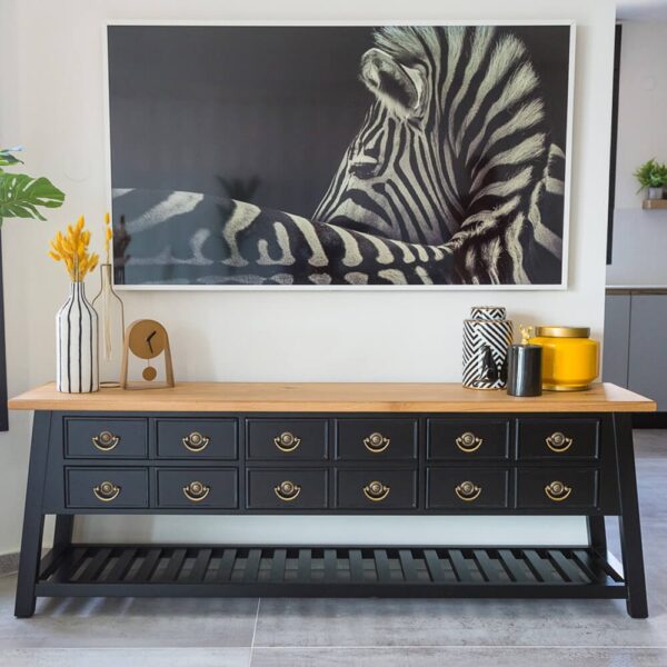 מזנון בעל 4 מגירות בצדדים וקלפה נפתחת
