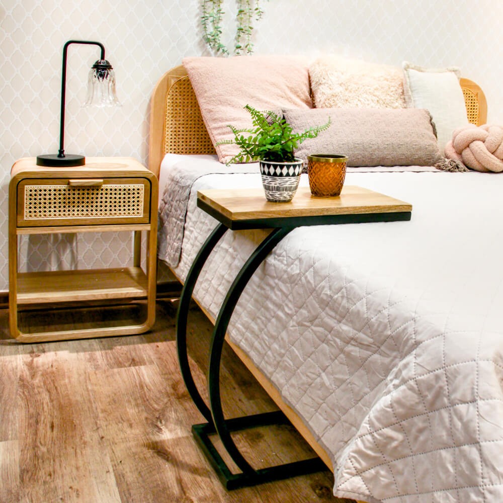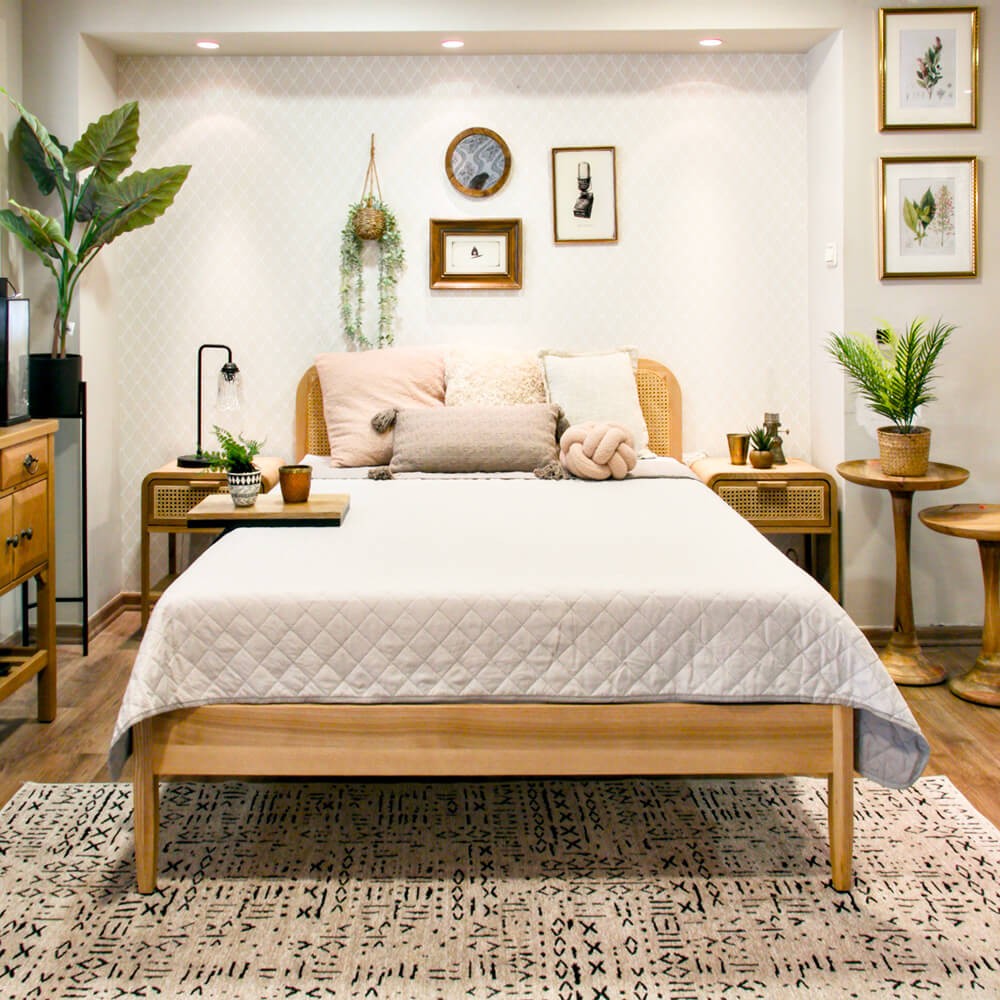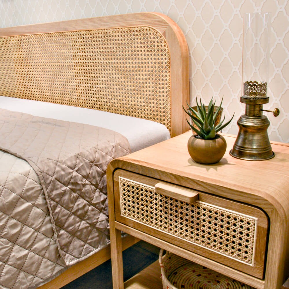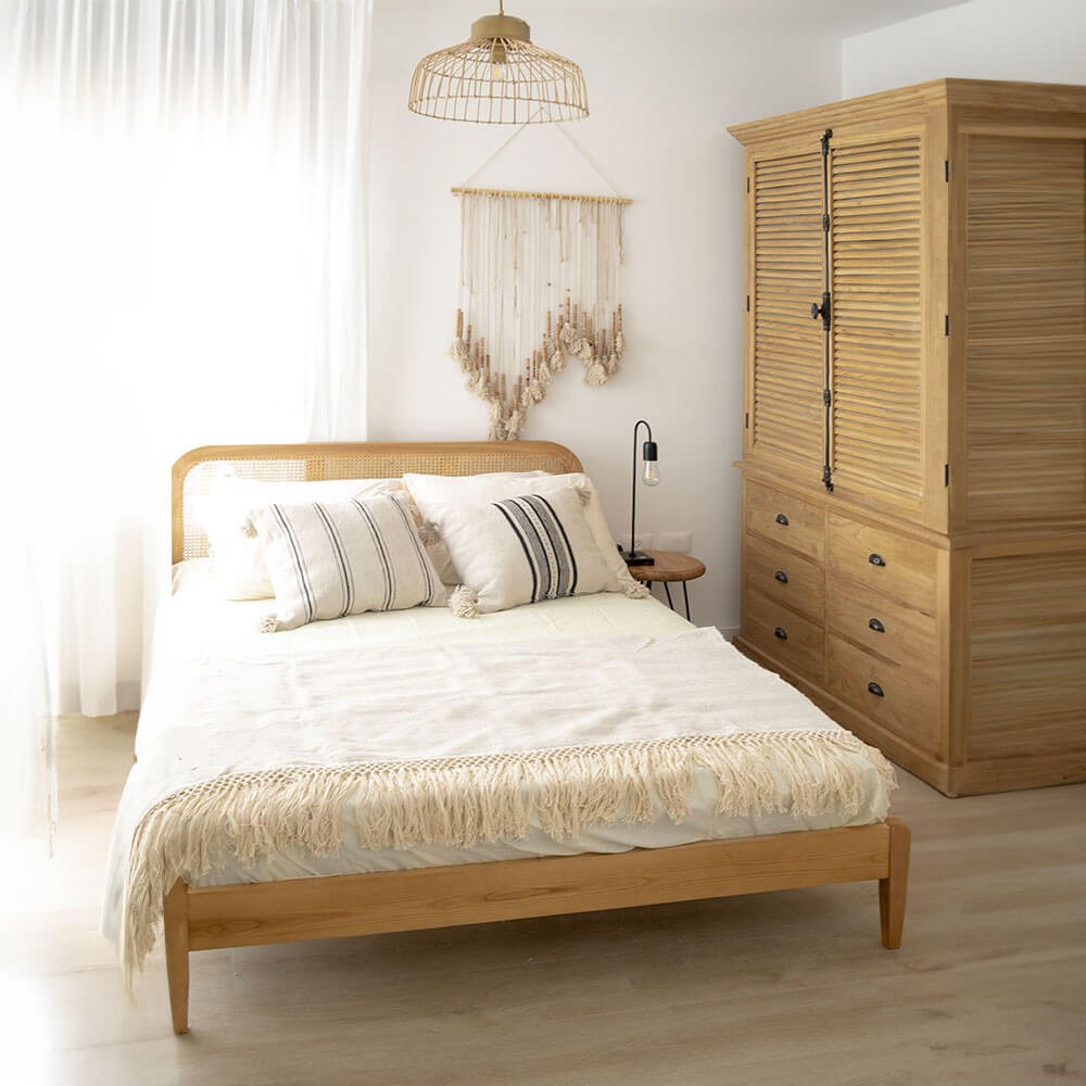 מיטה מקסימה מיוצרת מחומרים טבעיים ומעוצבת בסגנון בוהו שיק. מיוצרת מעץ אלון מלא וראש מיטה עם משטח ראטן מחוזק. בעלת מבנה קלאסי הכולל מגרעת קלה למזרון, מיוצרת במספר גדלים לבחירה