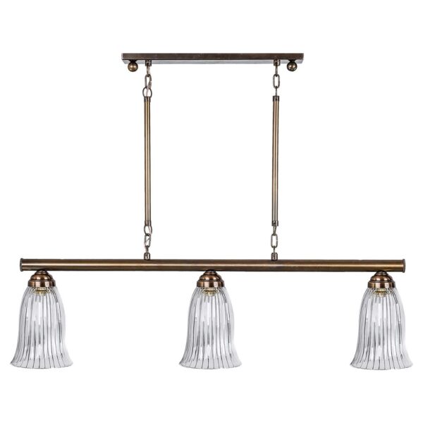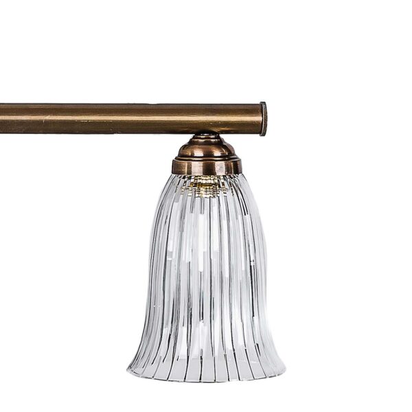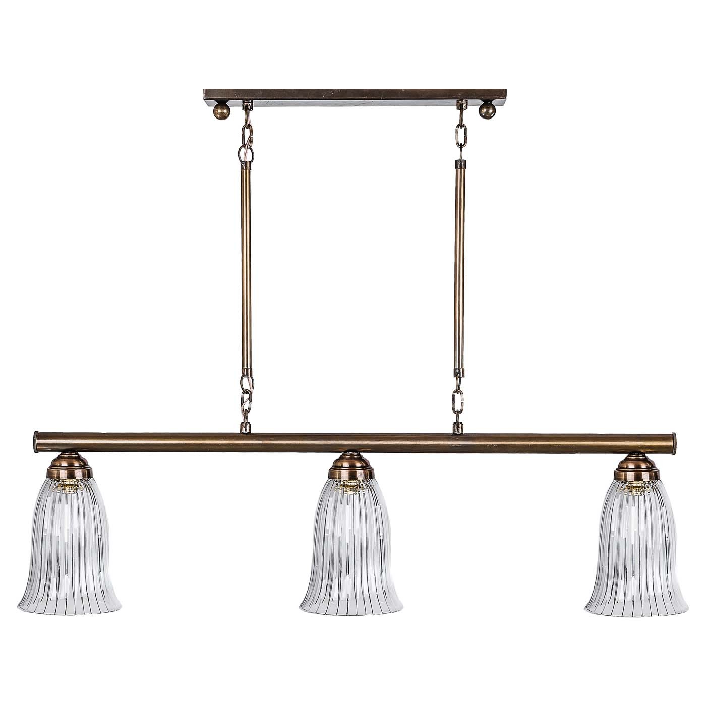 מנורת וינונה, בעלת בסיס אובאלי, 2 זרועות ומוט רוחבי בצבע פליז. מהמוט משתלשלים אהילי זכוכית עגלגלים מעוטרים בעבודת יד.