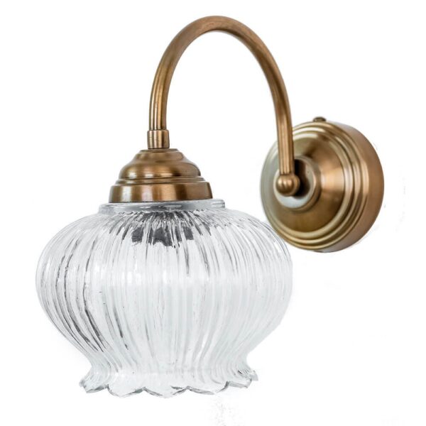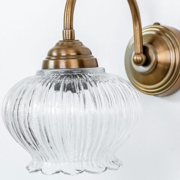 מנורת איירין המתוקה, בעלת זרוע מעוגלת בצבע ברונזה ואהיל זכוכית בצורת גביע פרח עדין, תפיץ אור עדין ונעים בכל חלל