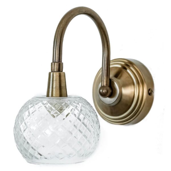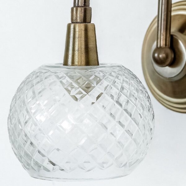 מנורת מייגן המתוקה, בעלת זרוע מעוגלת בצבע ברונזה ואהיל זכוכית עגול ומעוטר, תפיץ אור עדין ונעים בכל חלל