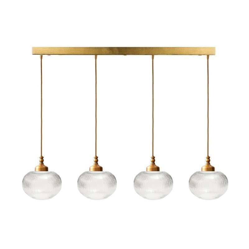פס פליז באורך מטר, צמוד תקרה, ממנו משתלשלים 4 כוסות מרהיבים על כבל בד וחובק קלאסי.