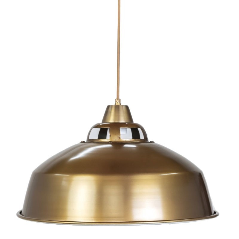סבינה עשויה אהיל מתכת גדול צבוע בתנור בצבע נחושת מבריק מבחוץ ובגוון לבן מבפנים להפצת אור אידיאלית.