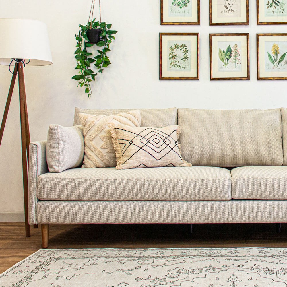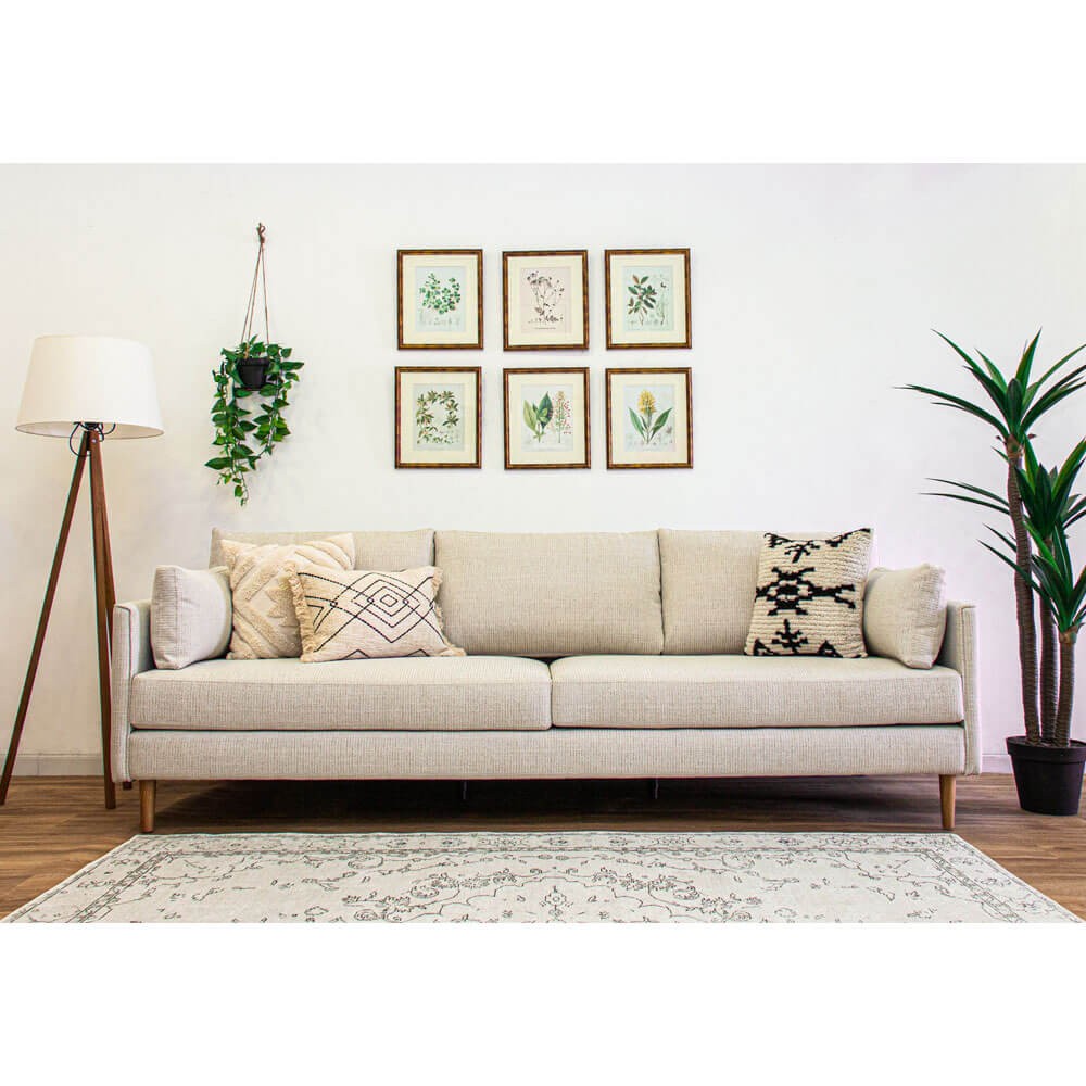 בעלת שלוש כריות גב מאורכות ורגלי עץ מעודנות