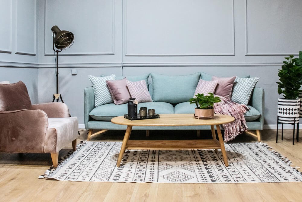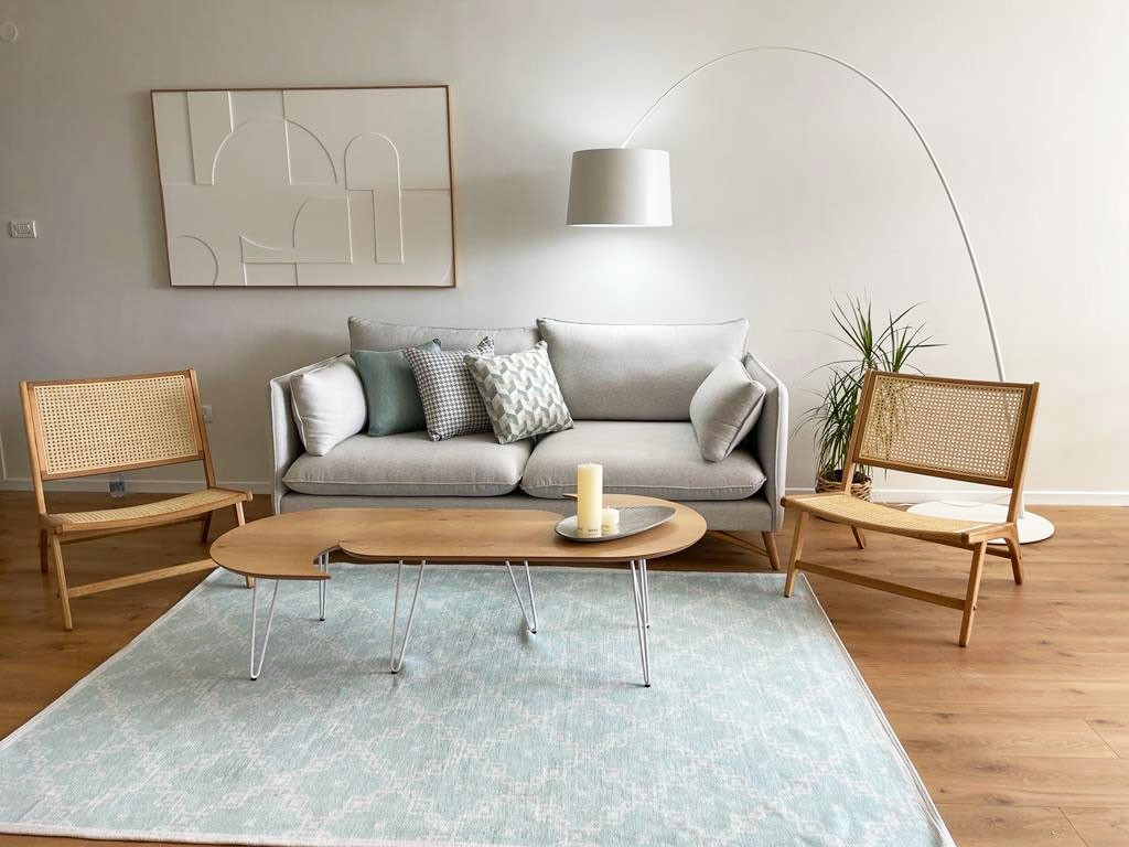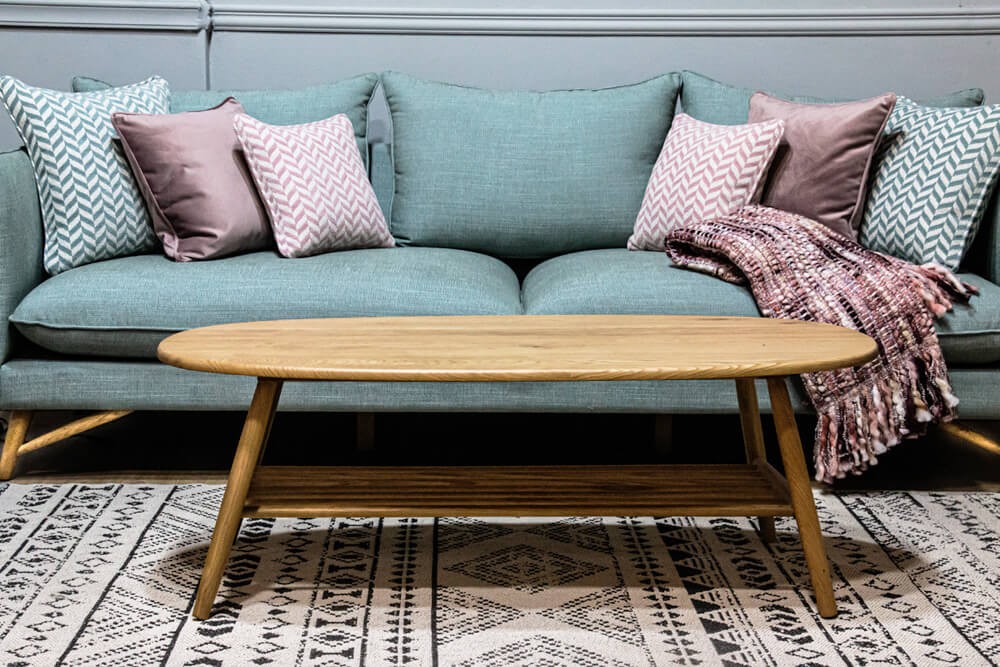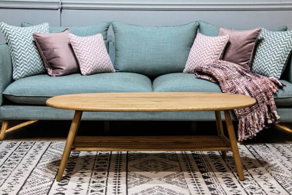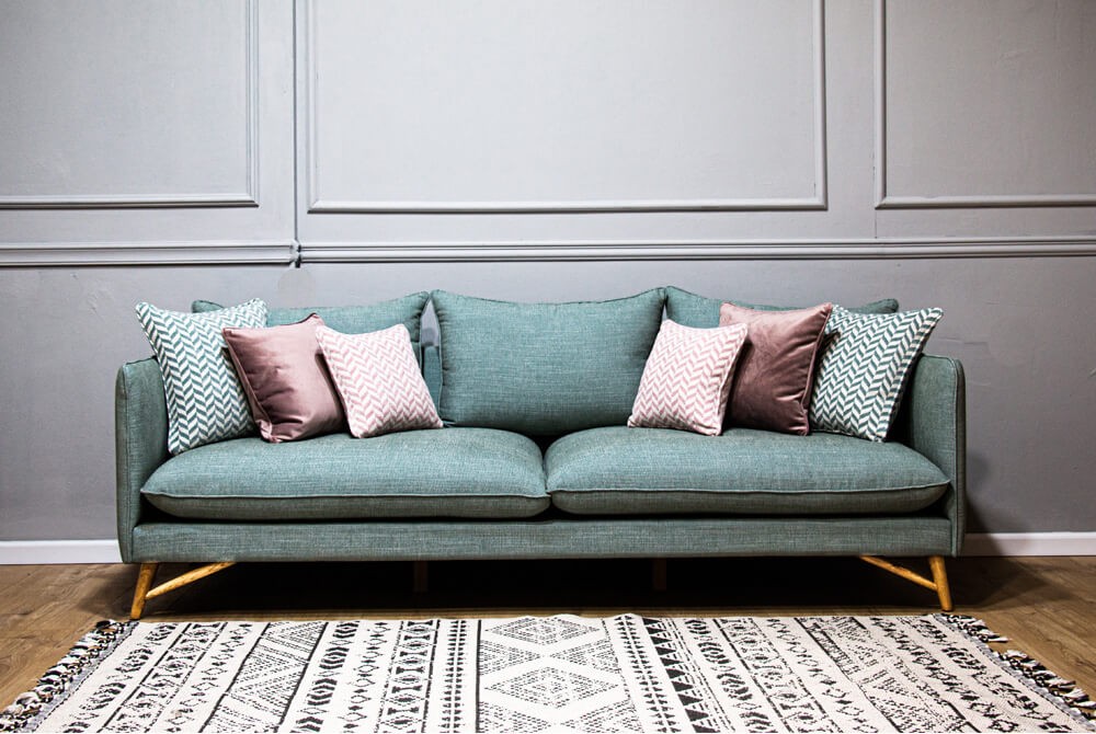 ספה לסלון בקווים נקיים, בסגנון סקנדינבי.