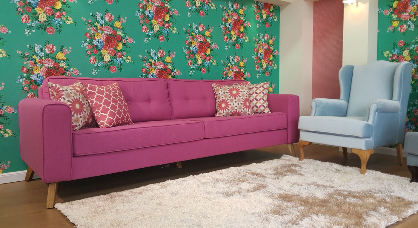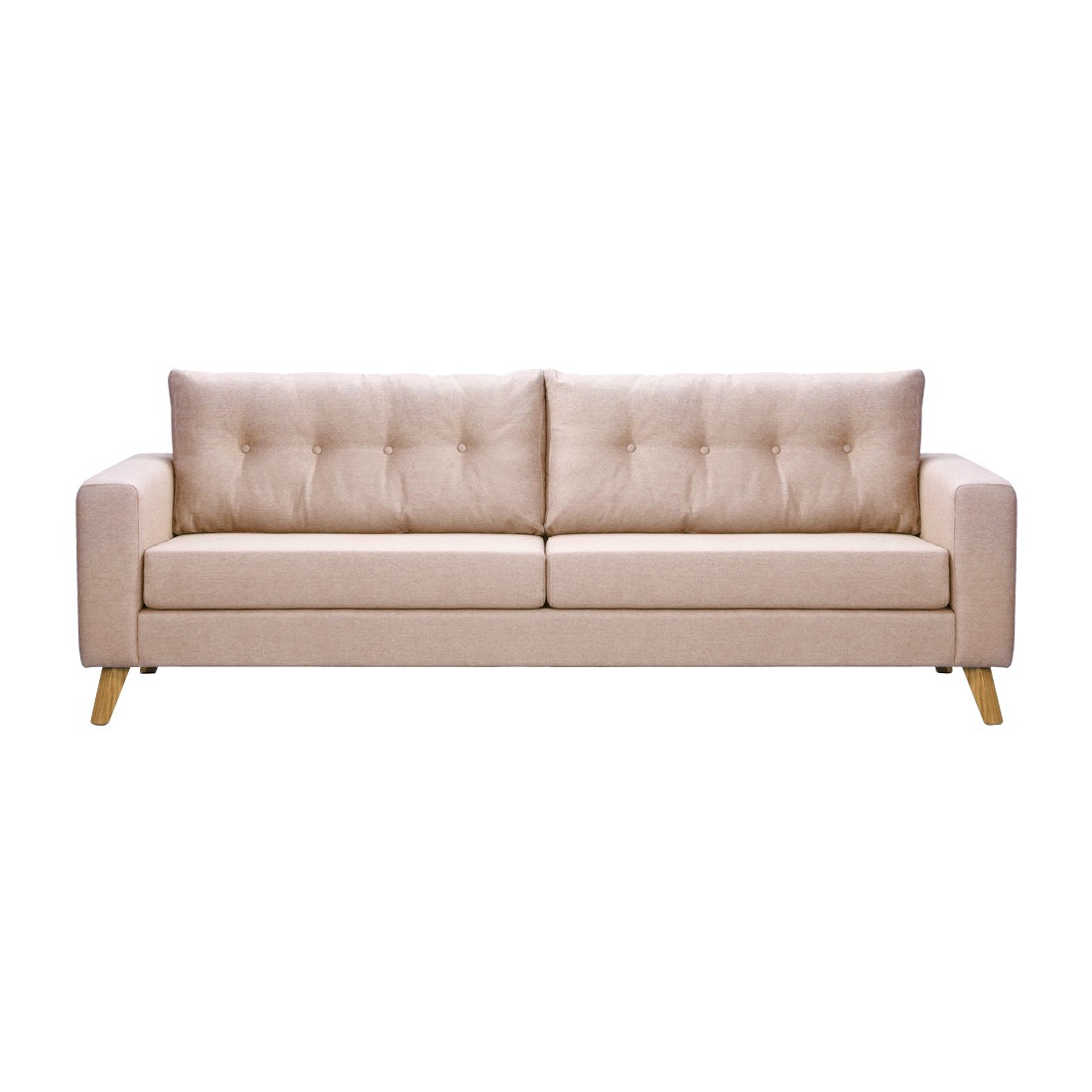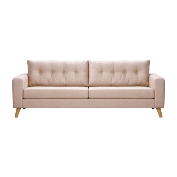 ספה מעוצבת תמר שלנו, ספה לסלון מרשימה ומפנקת, בעלת 2 כריות גב עם כפתורי קפיטונז' ורגלי עץ אלון אלכסוניות