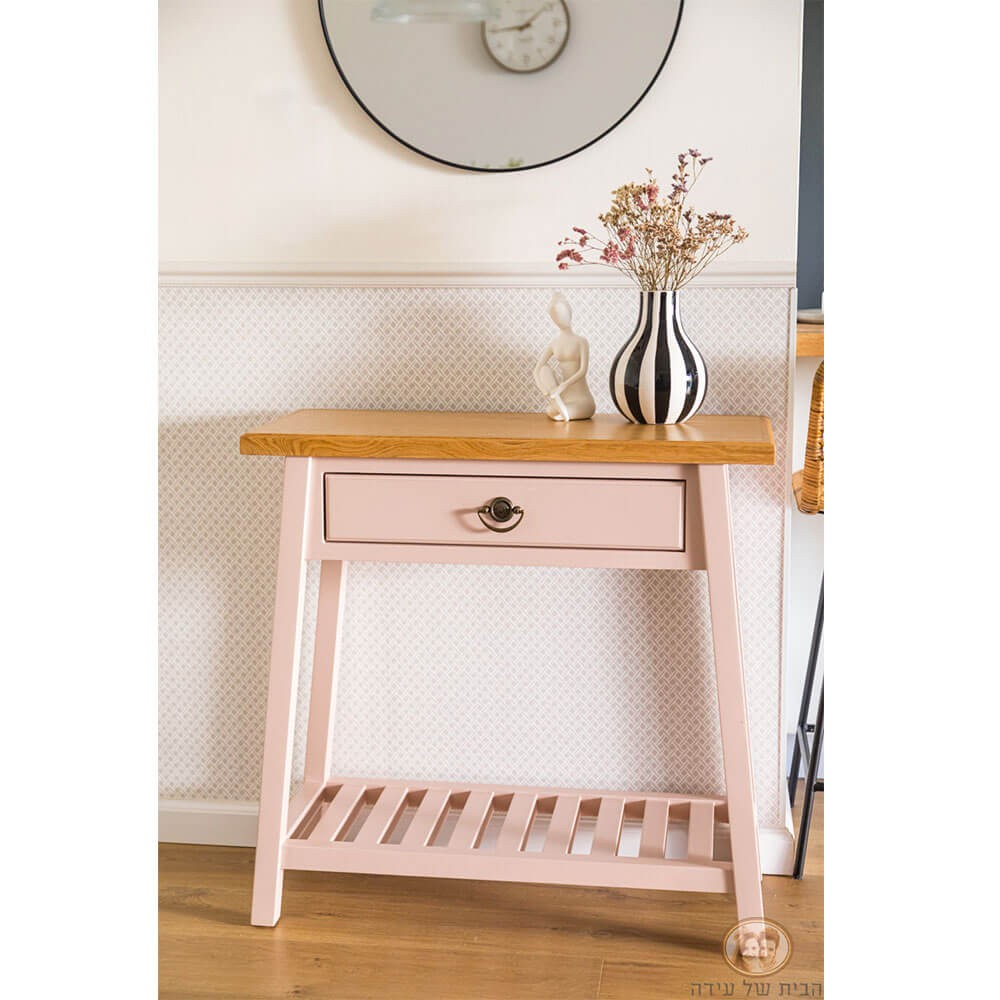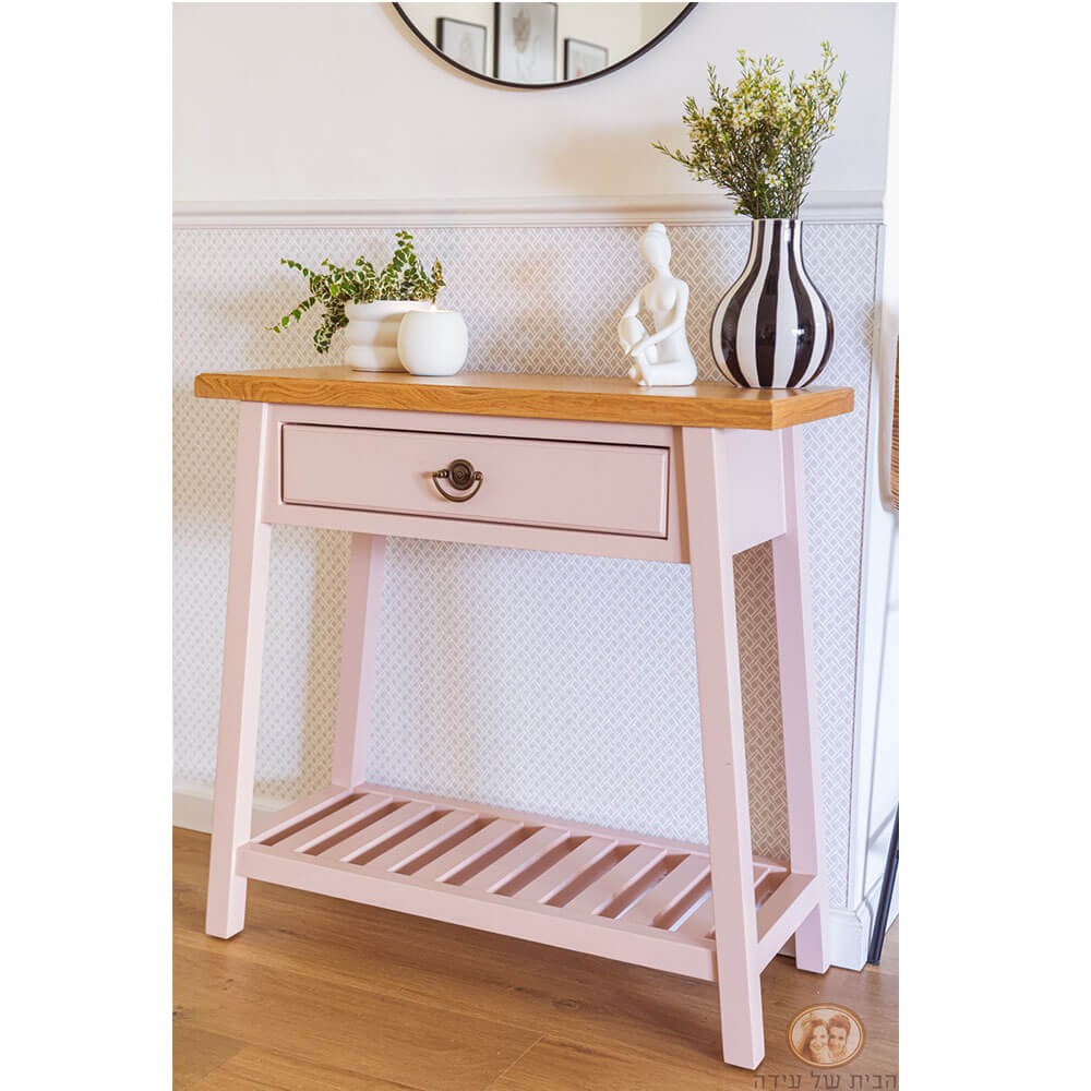 קונסולה עשויה עץ מלא, צבוע בגוון פודרה