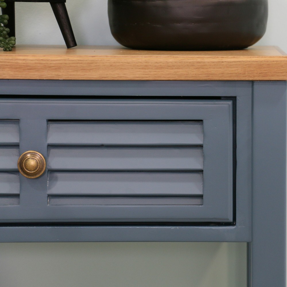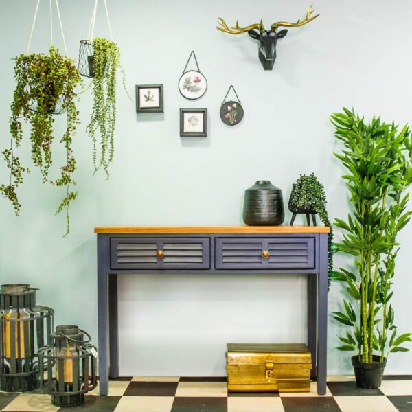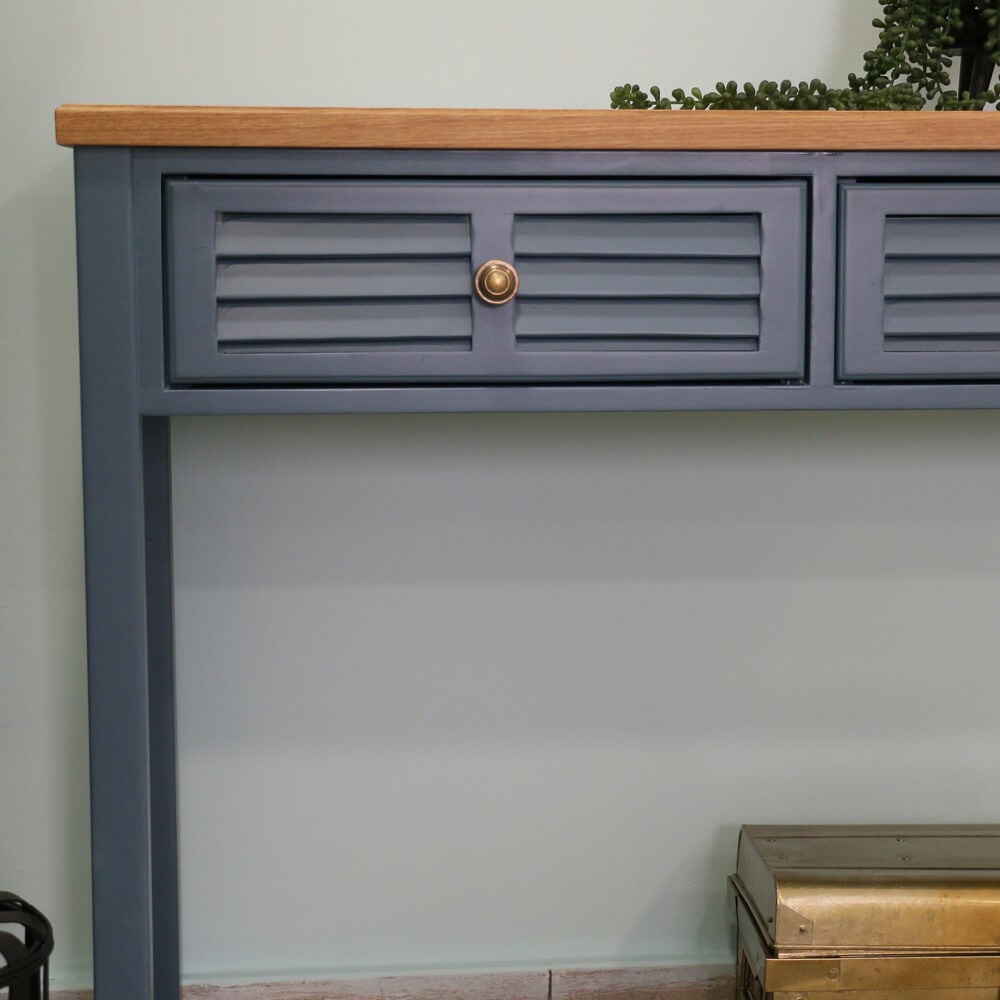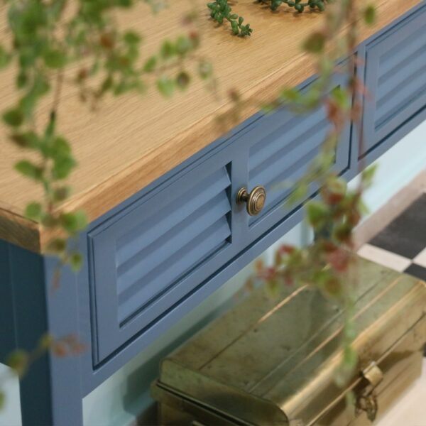 קונסולה עשויה עץ מלא, צבוע בגוון כחול מעושן