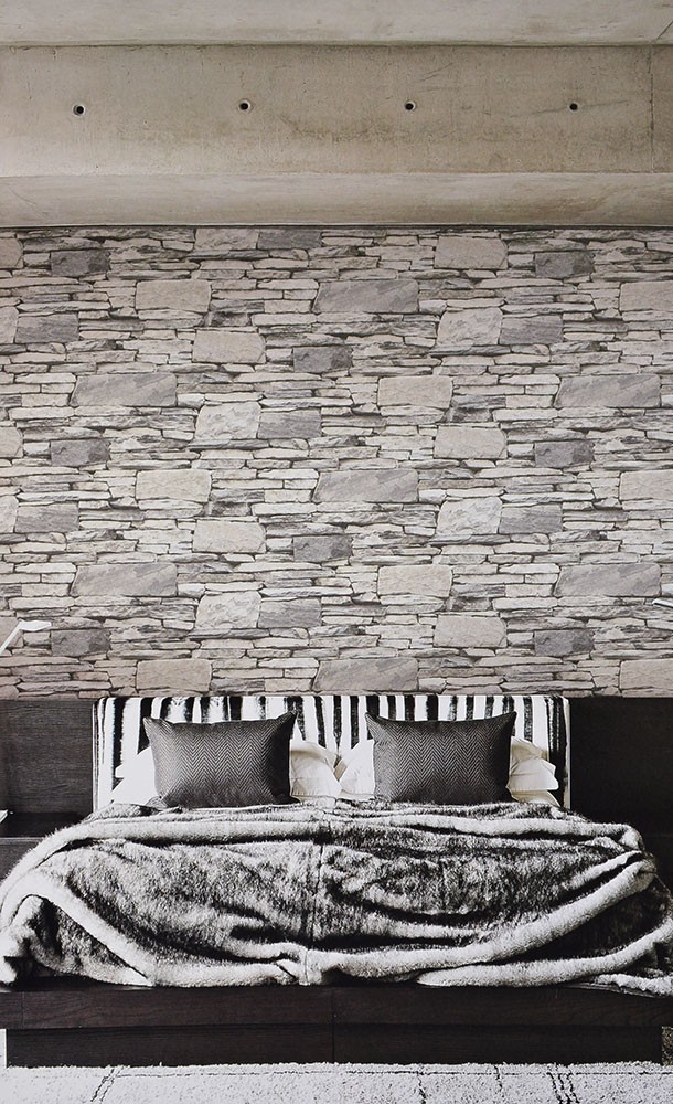 טפט במראה קיר אבנים טבעיות בגוונים אפורים