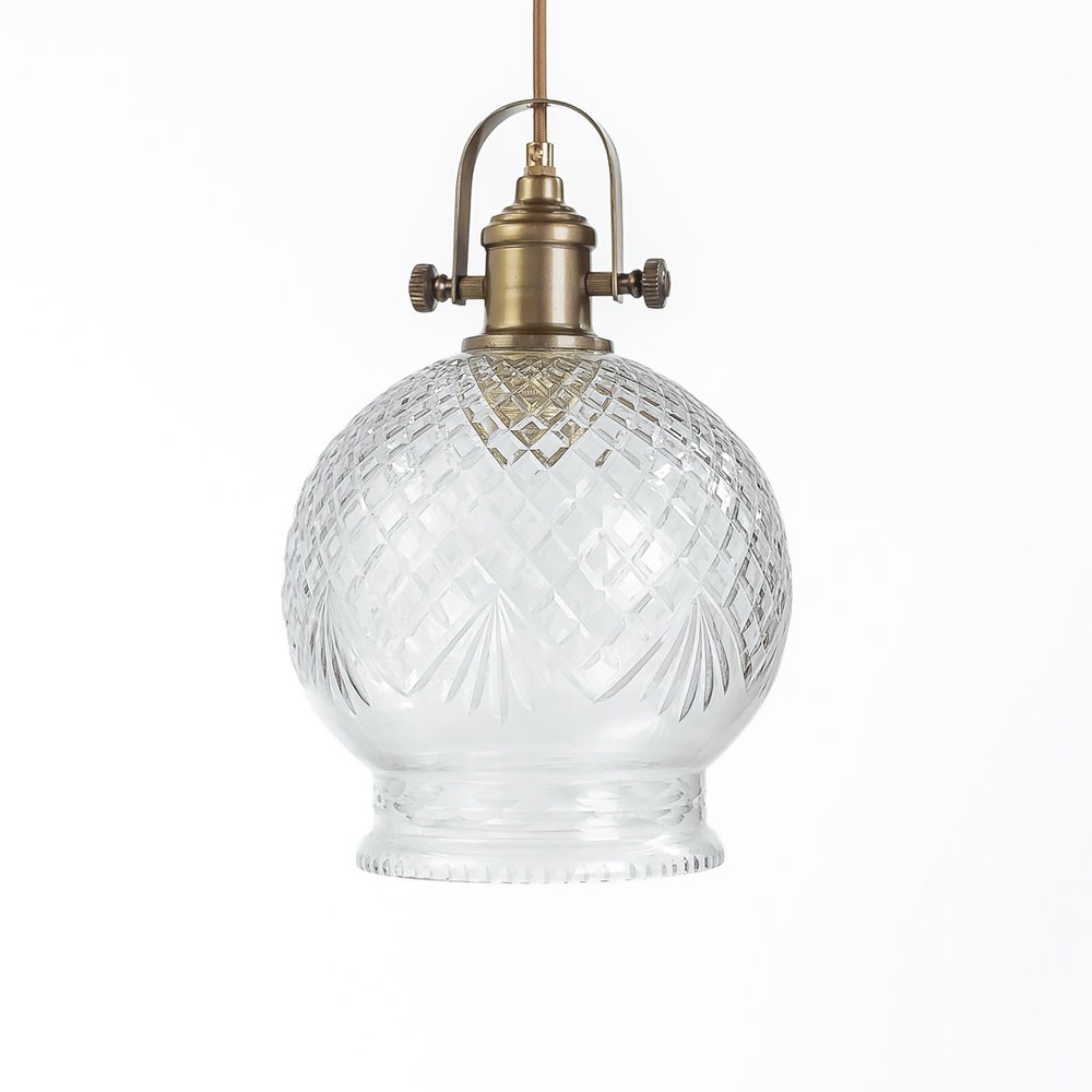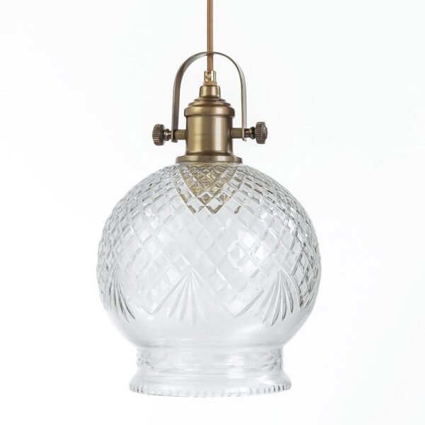 גוף תאורה תלוי בשילוב זכוכית מעוטרת. הגוף יכול להגיע במגוון חובקים ואף עם שרשרת