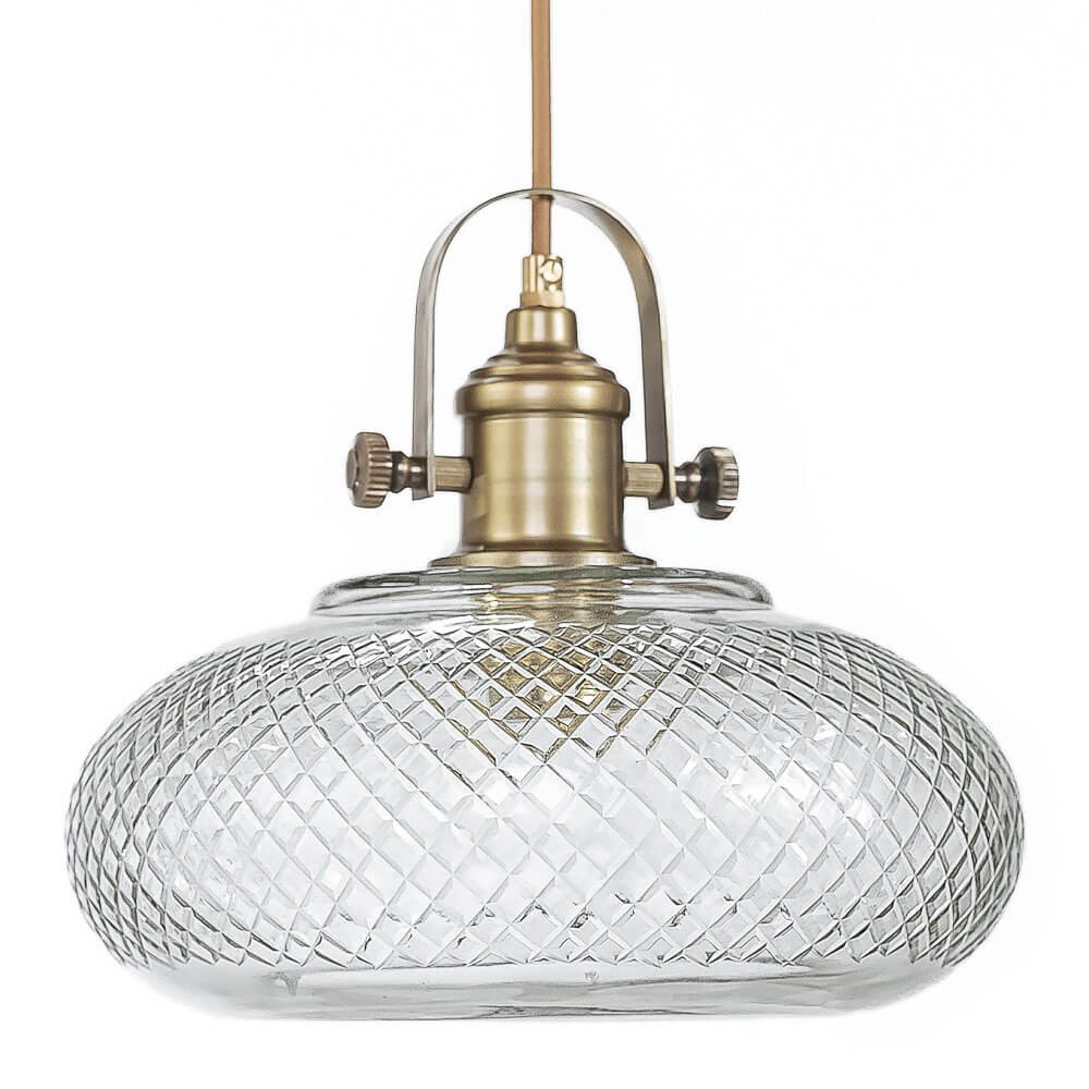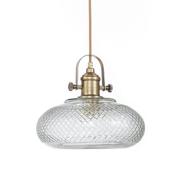 גוף תאורה תלוי בשילוב זכוכית מעוטרת. הגוף יכול להגיע במגוון חובקים ואף עם שרשרת