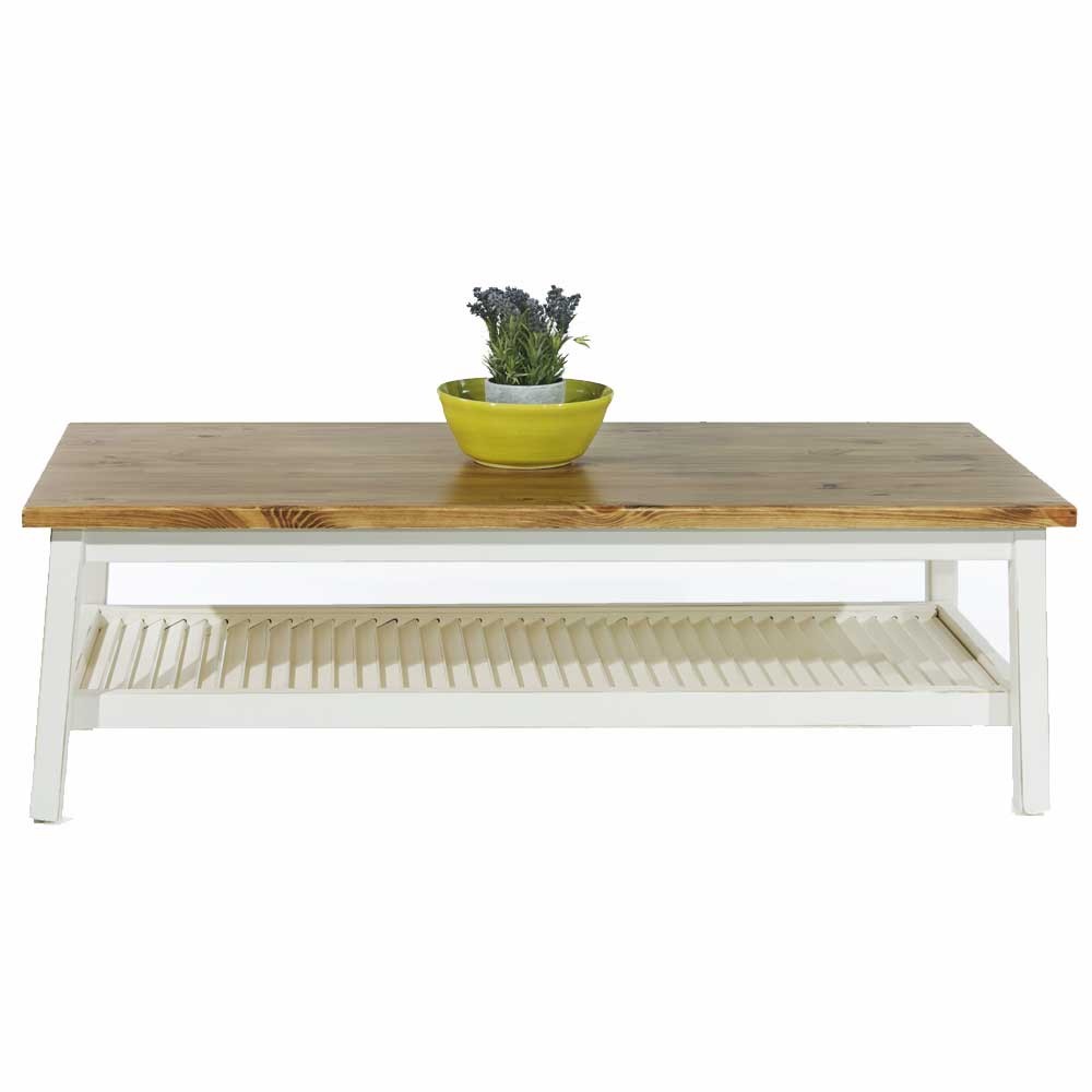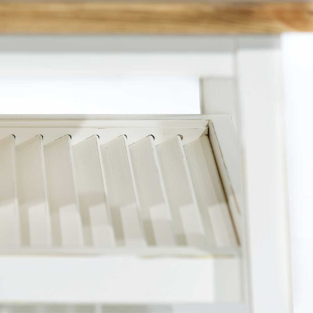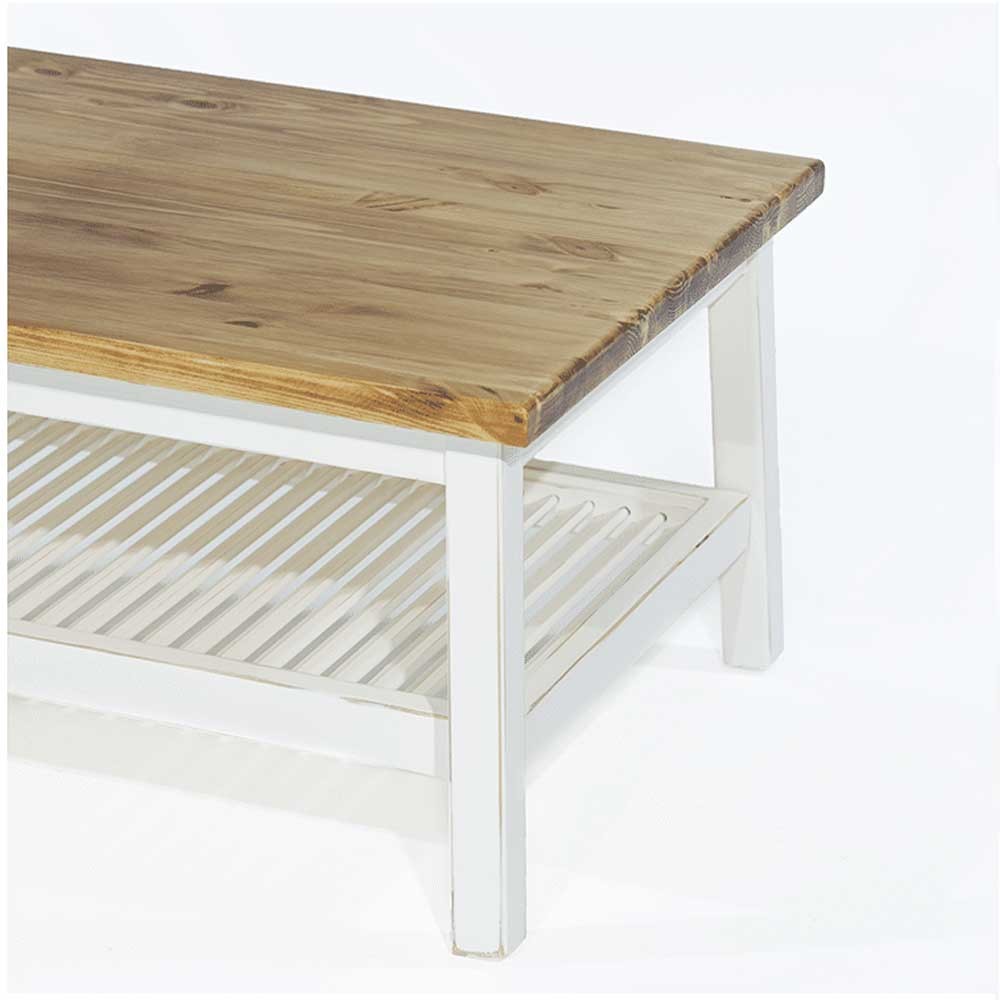 בעל מראה נוסטלגי וקוים נקיים. הפלטה עשויה פורניר עץ אלון בצבע טבעי, הגוף והרגליים צבעים בשמנת. לשולחן מדף תחתון העשוי בצורת תריס אופק.