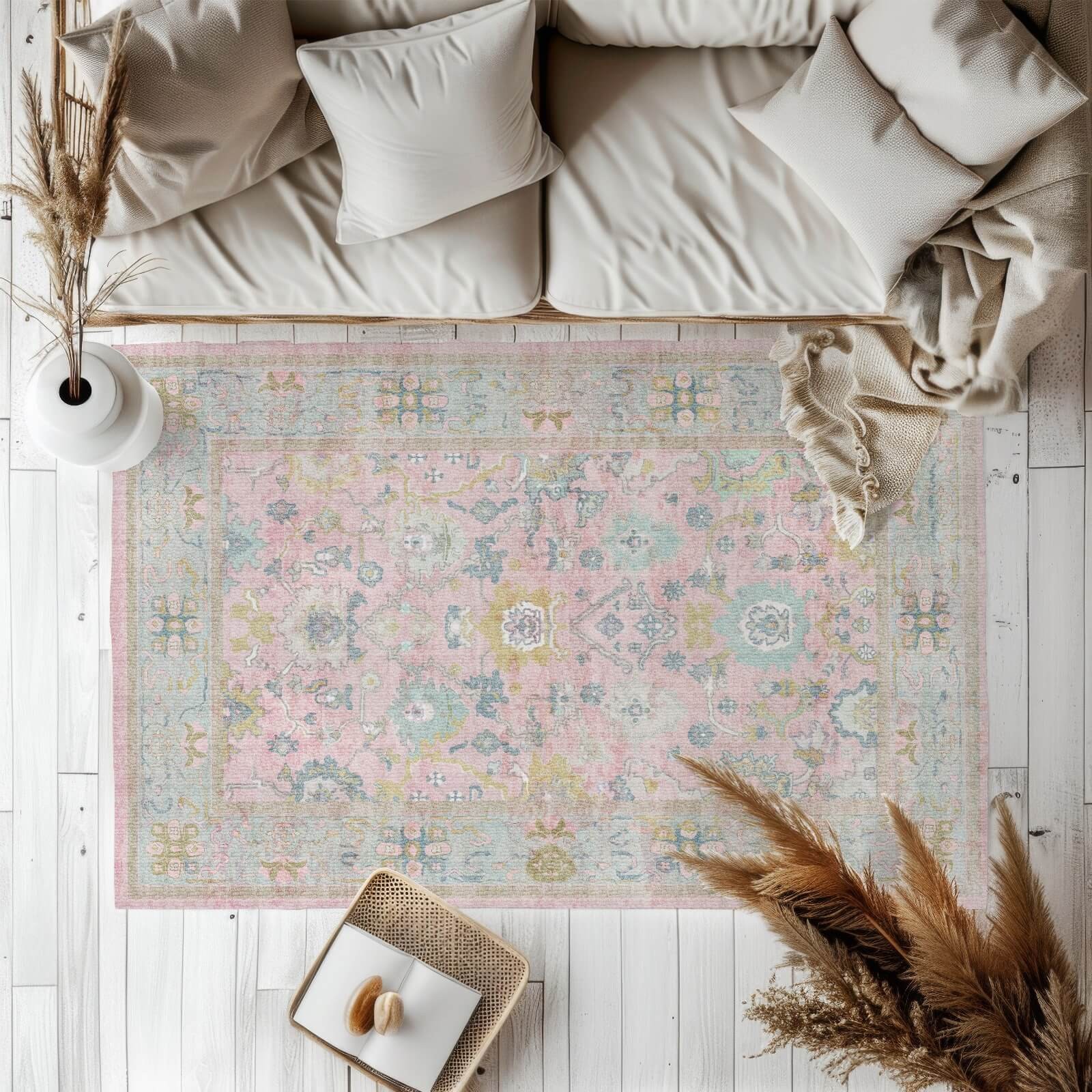 שטיח במראה וינטג' משופשף. אם תשאלו אותנו, שטיח הוא מוצר חובה בכל בית! הוא מגדיר את החלל, מעניק חום וצבע, ובעיקר קוצר מחמאות! קולקציית השטיחים החדשה שלנו נוצרה מאהבה גדולה למרקמים ולצבע. השטיח רך ונעים, בעל שכבת לטקס למניעת החלקה, ומיוצר בשיטה ייחודית משניל ופוליאסטר, המקנה לו מגע רך ומלטף. השטיח נצמד בצורה מושלמת לרצפה ונוח לשואבי אבק, כולל iRobot