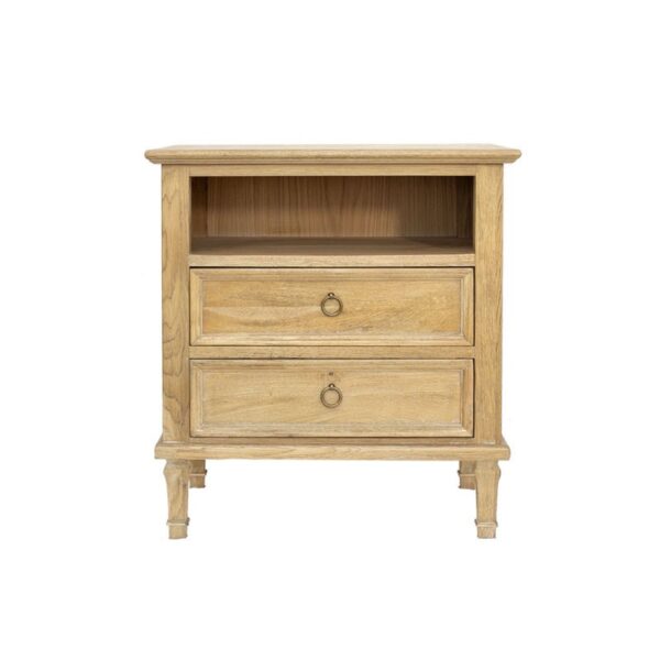 שידה קלאסית מיוצרת מעץ אלון מלא, ללא הברגות או הרכבות, בעלת שתי מגירות ותא פתוח, רהיט איכותי בגימור מעולה