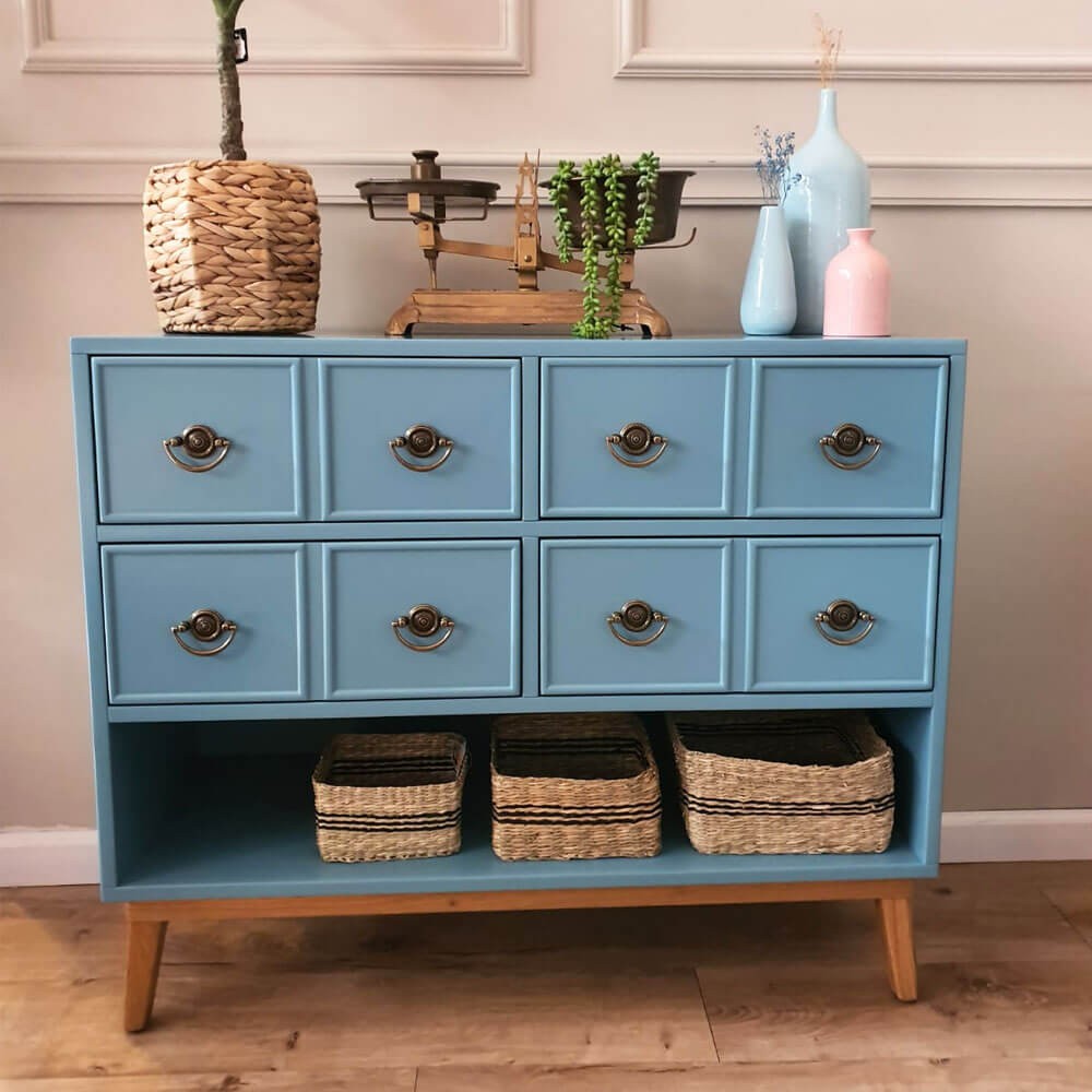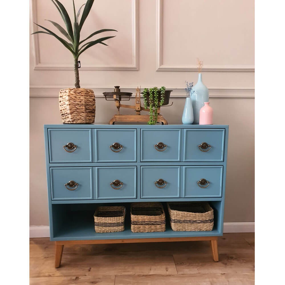 שידה מעוצבת מנואל, שיקית ואלגנטית, בעלת ארבע מגירות (דמי 8 מגירות), ומדף תחתון נוסף