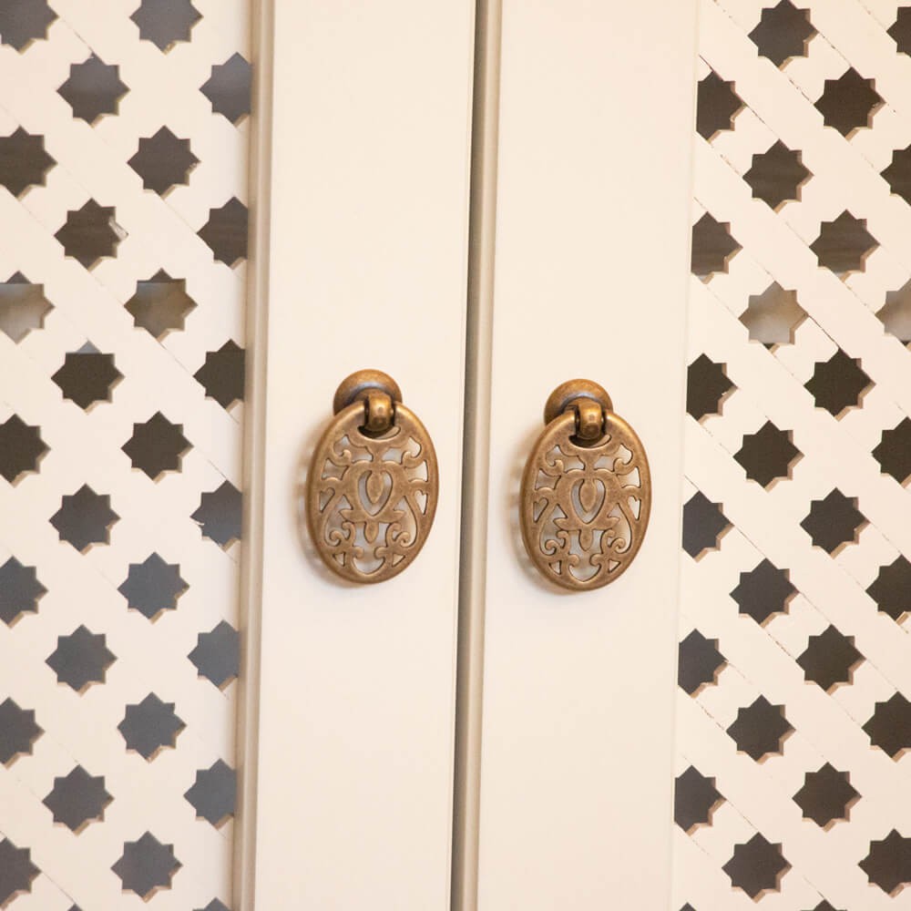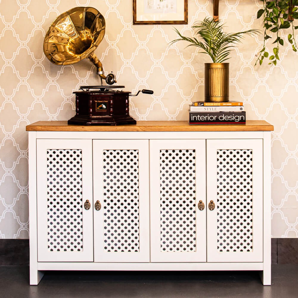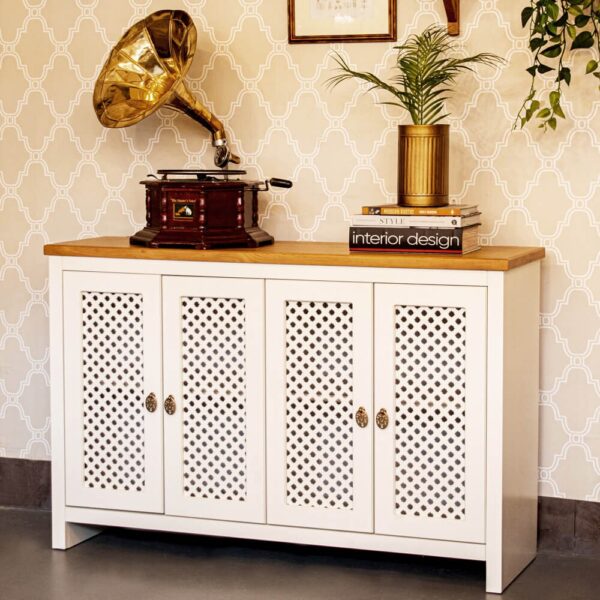 שידה מעוצבת אדריאן, שיקית ואלגנטית, בעלת ארבע דלתות רשת עץ היוצרות אוורור