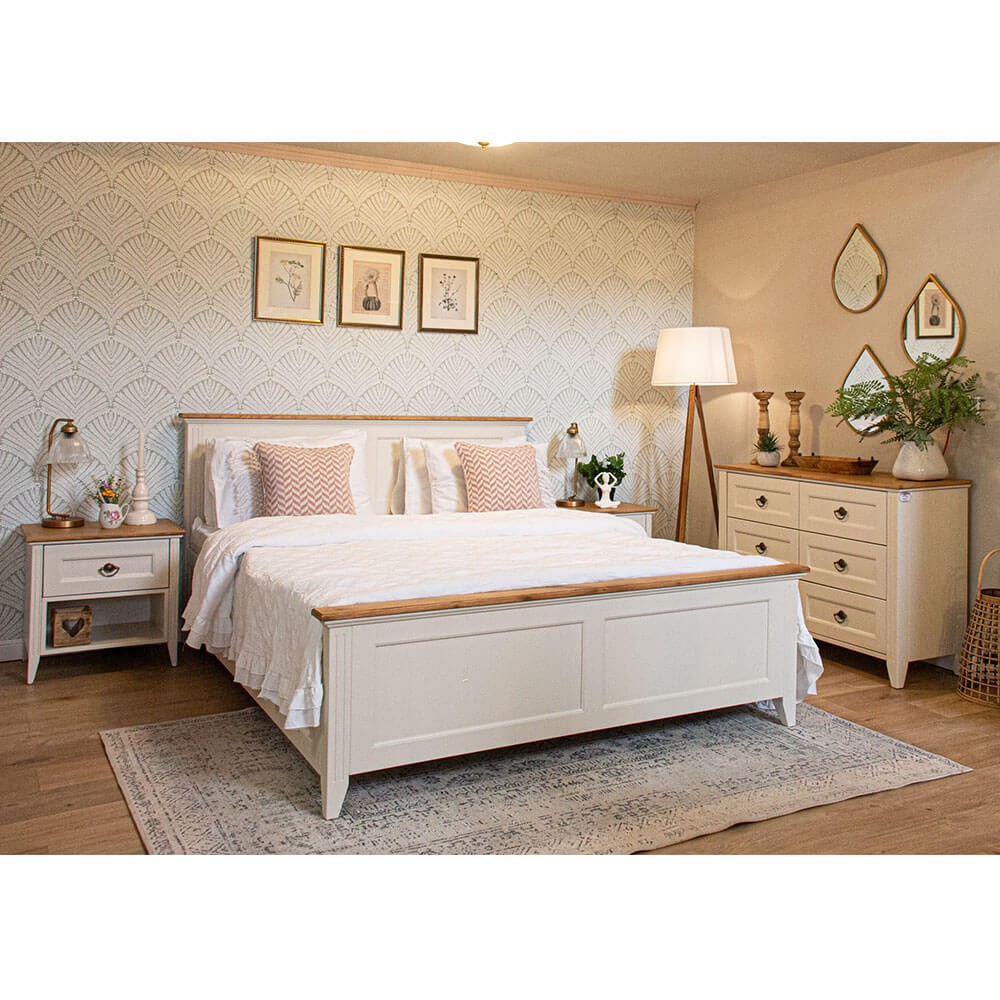 שידת סופיה שלנו, אלגנטית ויפה בעלת מראה נקי, חמים וכפרי, עם ידיות מעוצבות בגוון פליז