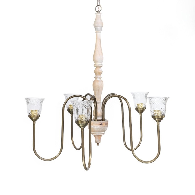 שנדליר משולב עץ ופירזול בגוון פליז