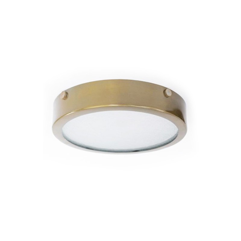 גוף צמוד תקרה עם מסגרת פליז וזכוכית חלבית שקופה למחצה.