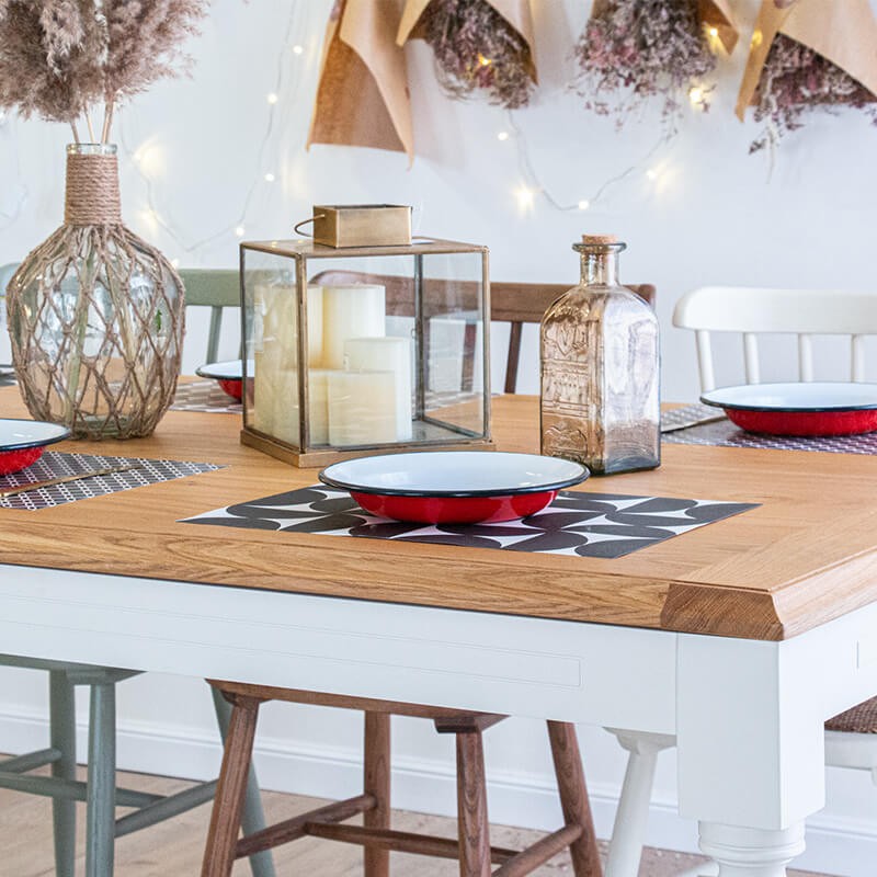 שולחן עץ מלא (בוק)- עם משטח עליון מפורניר אלון עם קנט אלון מאסיבי