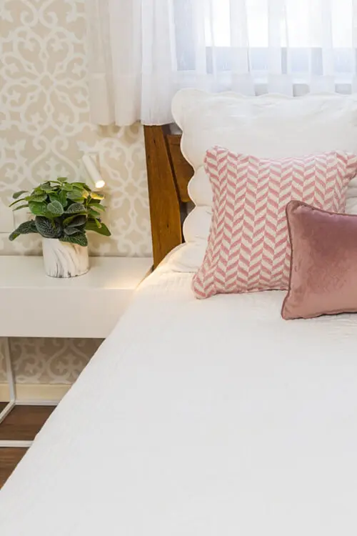 בחדר השינה הדביקו את הטפט בקיר גב המיטה