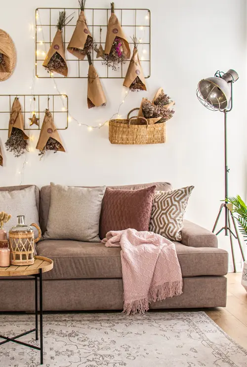 תלו פריטים דקורטיביים מעל גב ספה