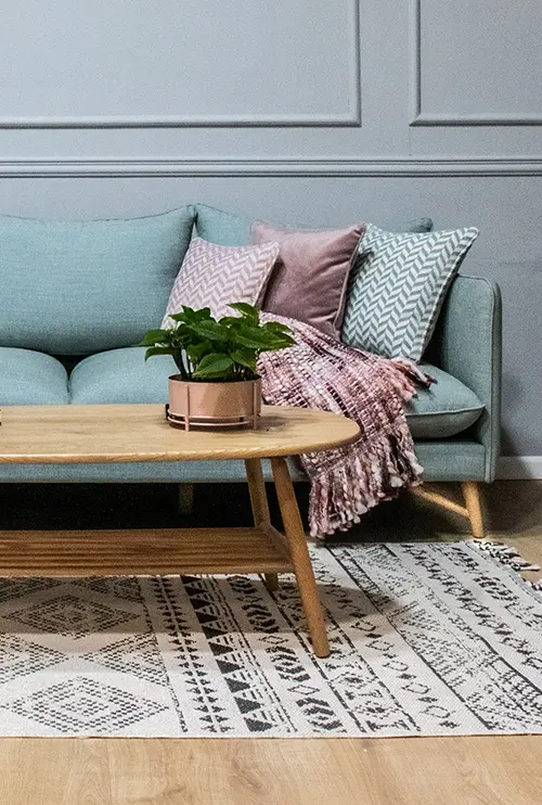 בחרו את הטקסטיל בסלון בסקאלת הצבעים של הספה למראה הרמוני ורגוע